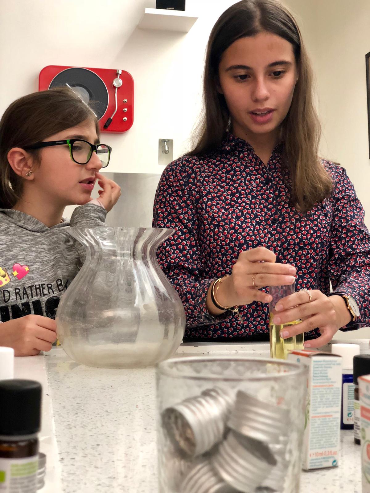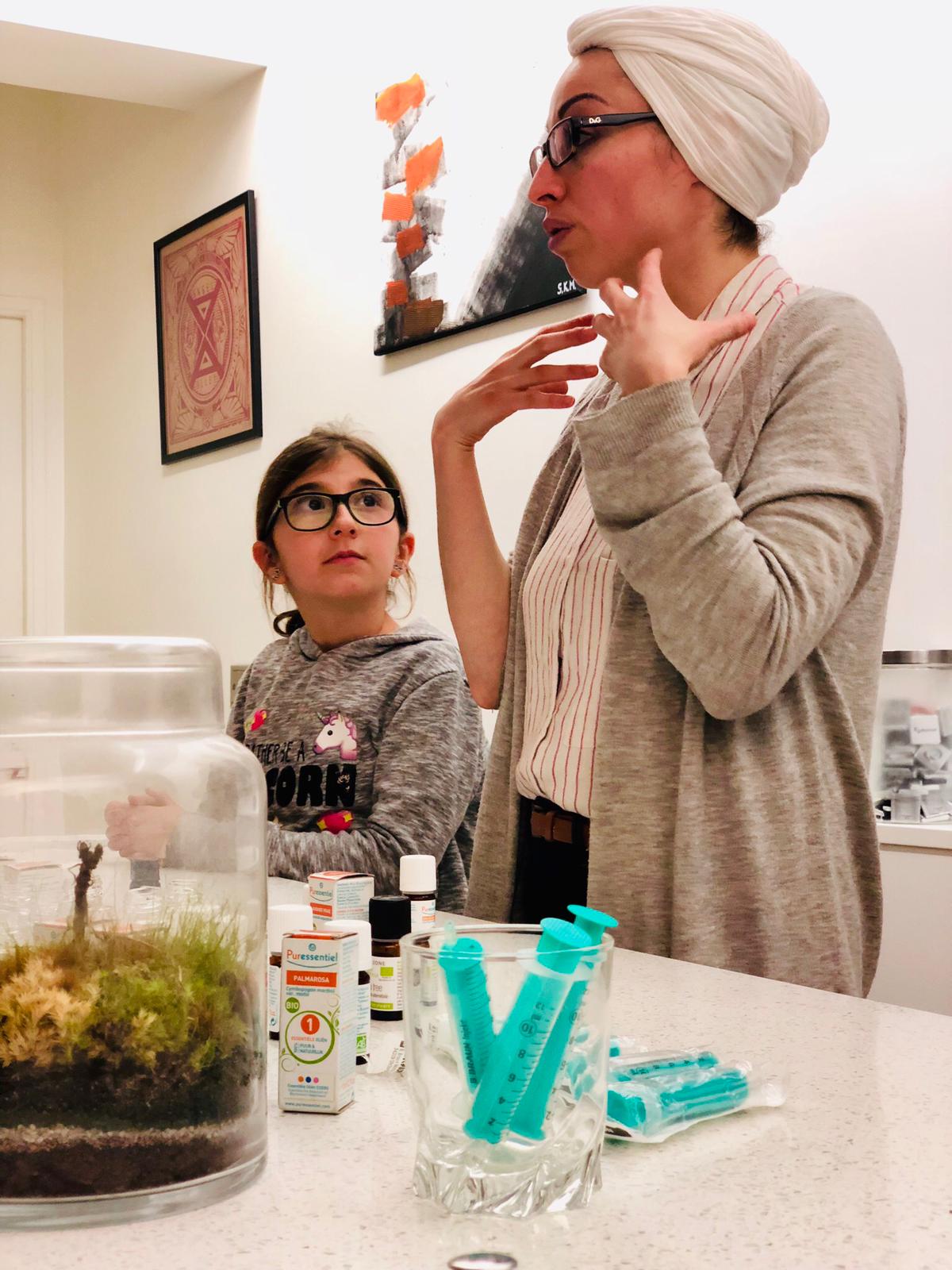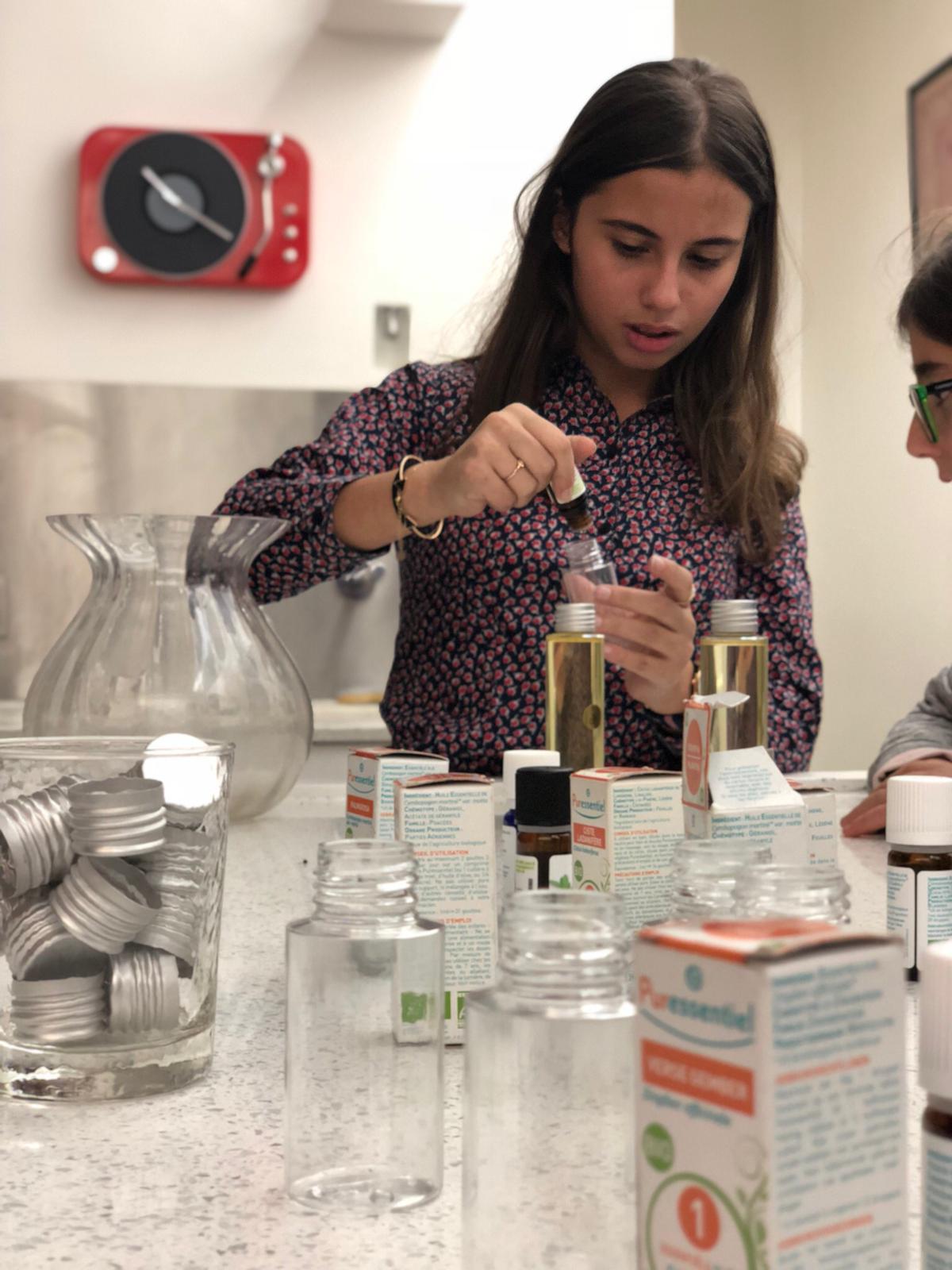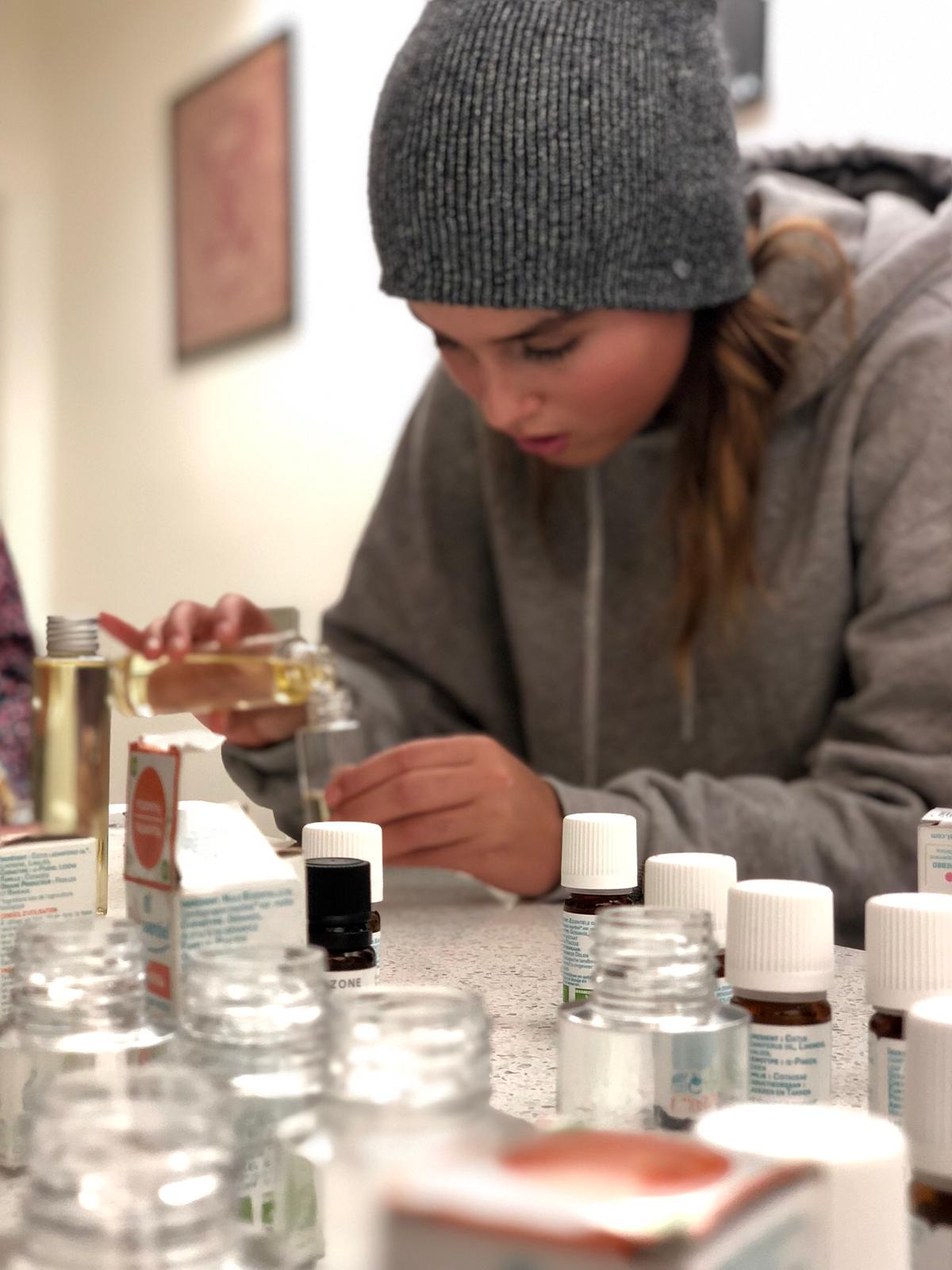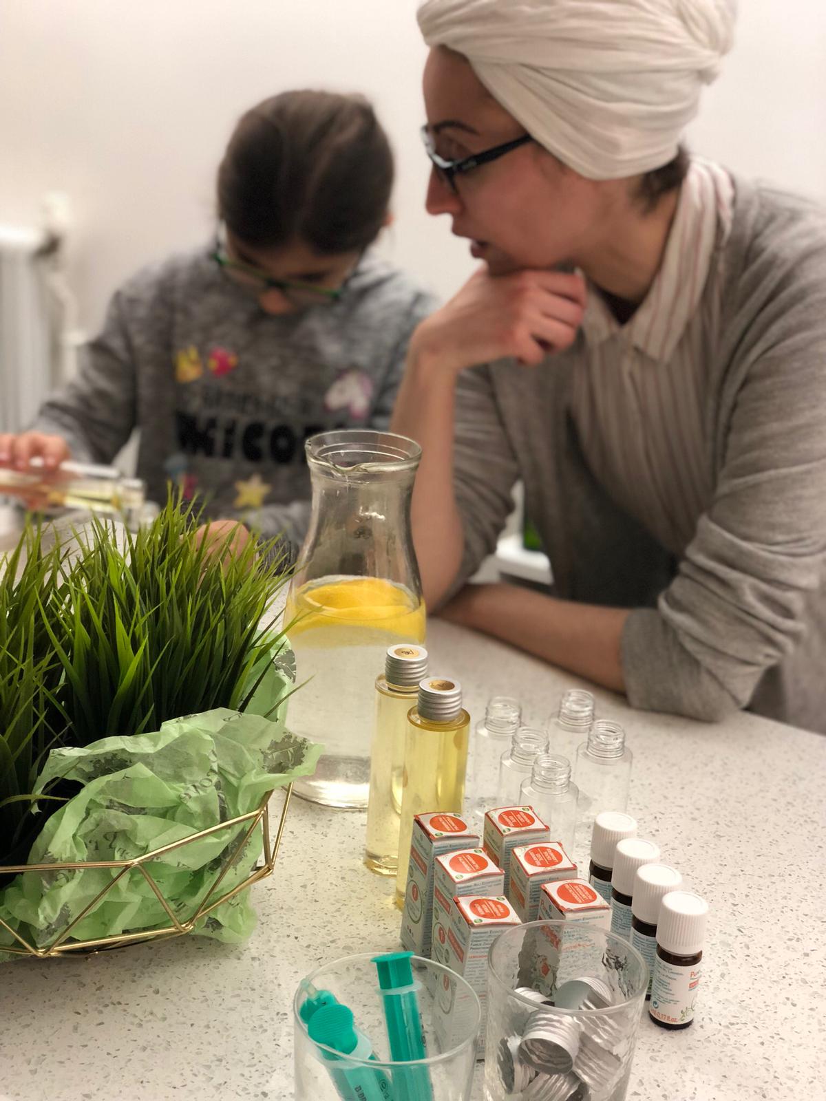 Parce qu’on s’occupe aussi de vos filles ! Sensibilisation aux huiles Essentielles et Atelier “Je fabrique mon huile de Beauté” … Jihenne la naturopathe a adoré, les filles enchantées … à refaire évidemment !