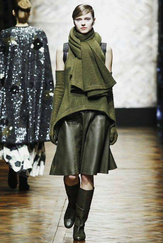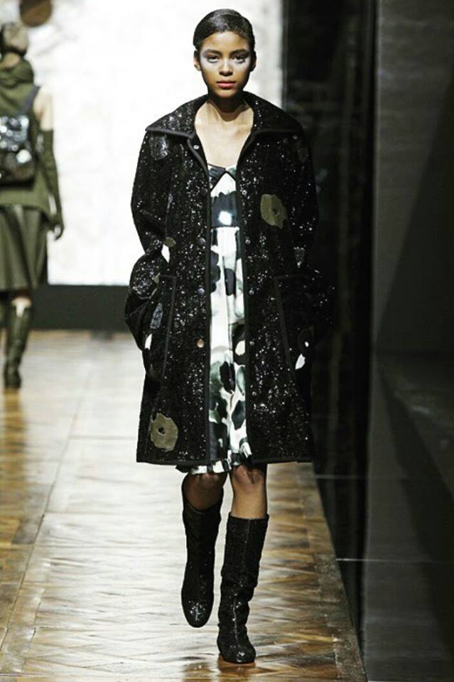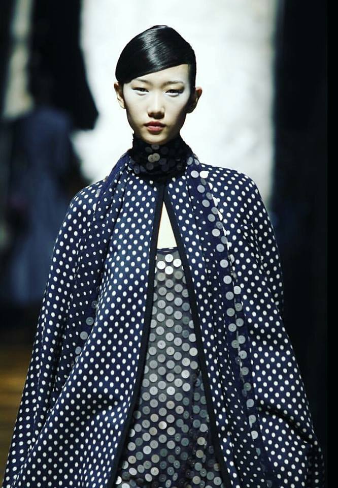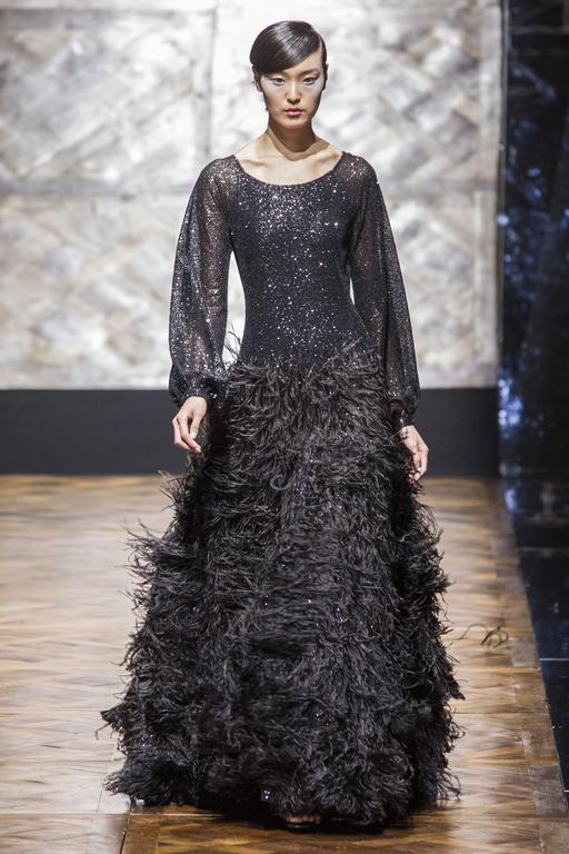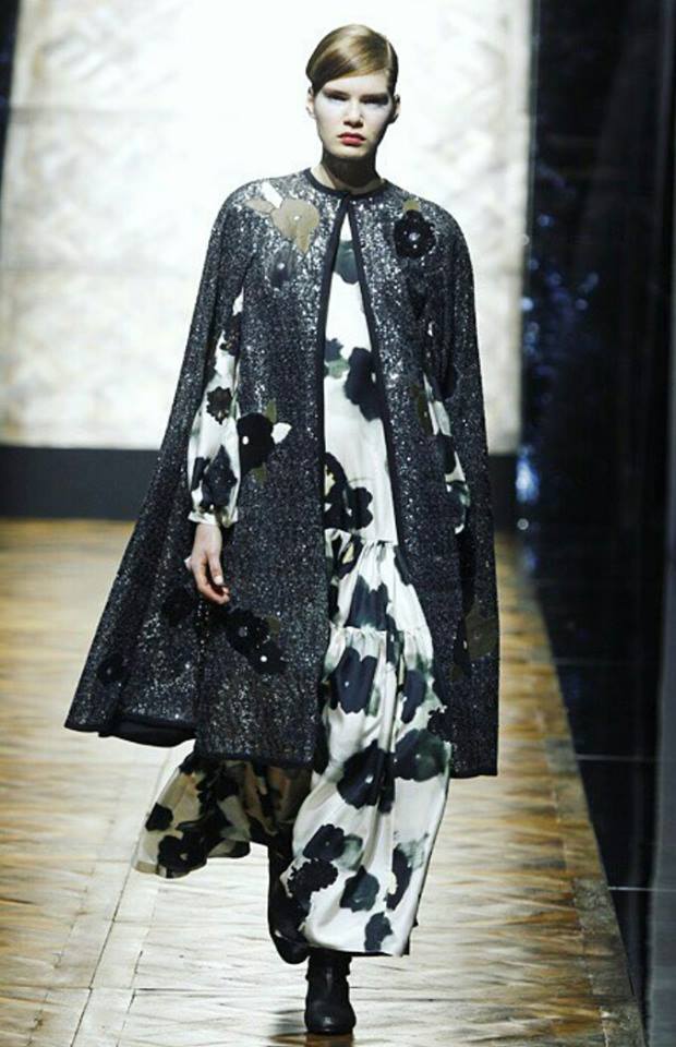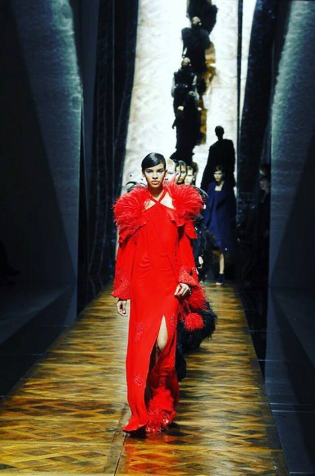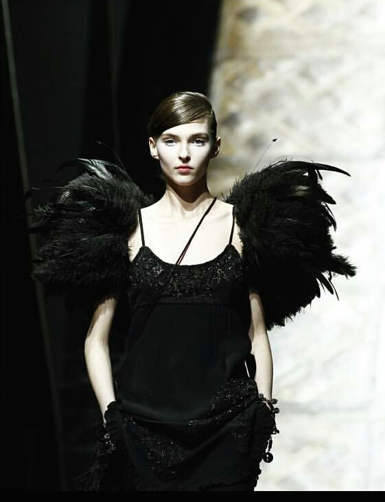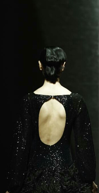 Une palette de couleurs bleu, kaki, noir, gris flanelle, une touche de rouge électrique, des ensembles bi-matières, des plumes angéliques, des paillettes ici et là, des coupes modernes … tout ce que j’adore … je vous laisse découvrir ses œuvres …