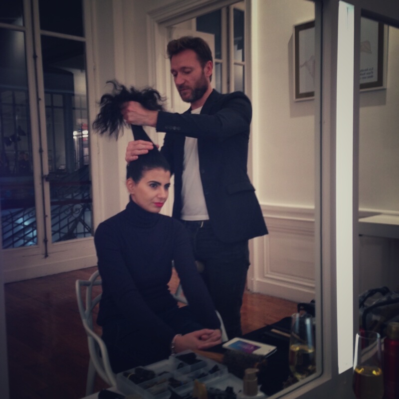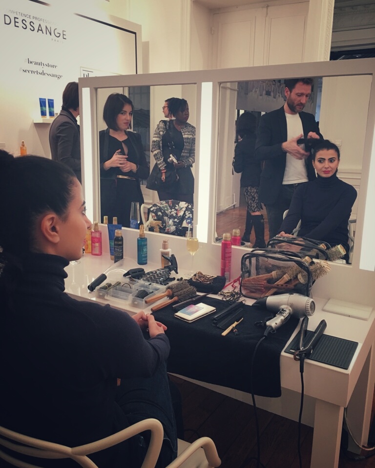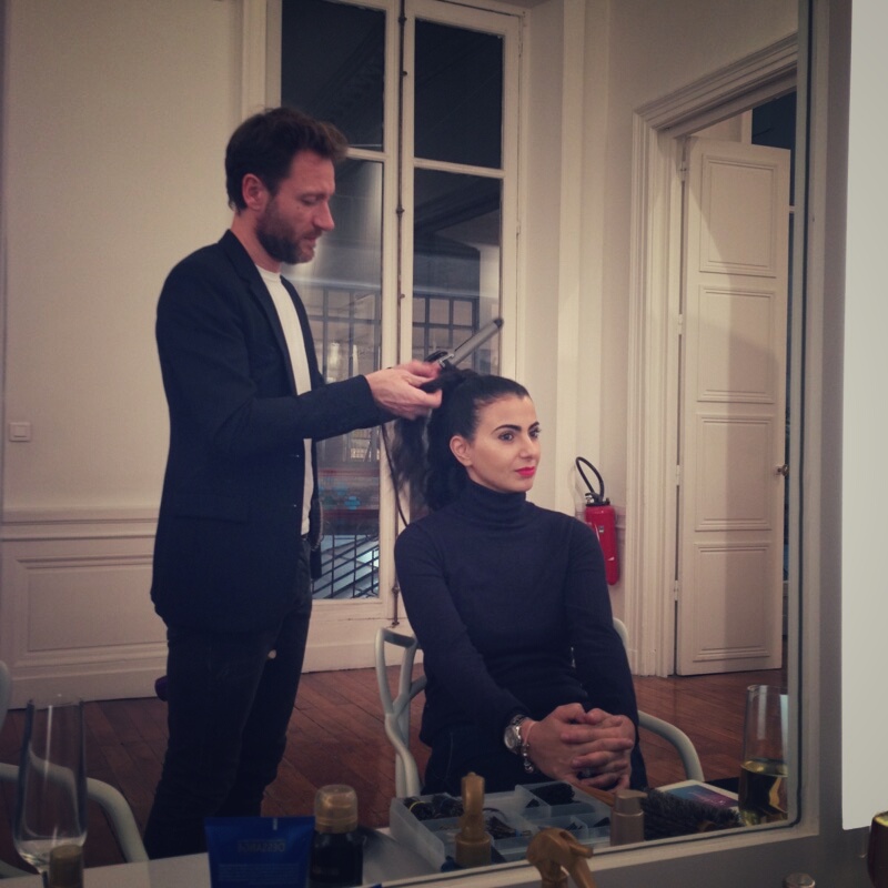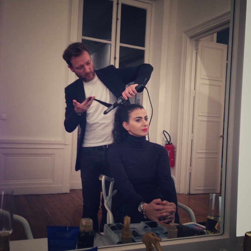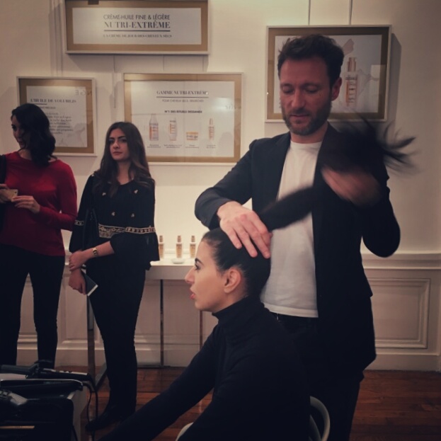 C’est lors d’un événement en janvier dernier, qu’a mon tour je lui avais confié mes cheveux … en lui demandant de laisser danser ses doigts de fée.
