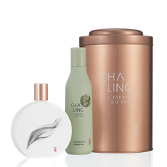 Des souvenirs de voyages en de lointaines contrées, la signature olfactive CHA LING est inspirée des sensation nées de promenades dans l’immensité des forêts de Thé du Yunnan … Fraîche et délicatement boisée à la fois, l’eau de toilette Cha Ling exhale les senteurs de la fleur de thé Pu’Er mêlées à celles de la galette de thé fermenté, signature olfactive de toute sa gamme de soins. Une harmonie délicate et sensorielle, pour un départ croquant et lumineux, révèle la fraîcheur verte et subtilement florale du Thé Blanc associé à un voile mouillé de Freesia et à la transparence fruitée de la Poire.